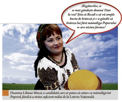 - Pe Zero TV, Senzaţionescu a adus-o să dea cu meliţa, o seară întreagă, pe madam Liliana Mincă, fosta şefă a Loteriei, actualmente candidat PPDD. Lasă că vine domnu’ Dan preşedinte şi vor câştiga la 6 din 49 toţi săracii. Prin rotaţie. Dar dacă o să câştige, nu devin ciocoi? Păi atunci le confiscă premiile şi le trage din nou la loto! 49 săraci din 6 ciocoi!
