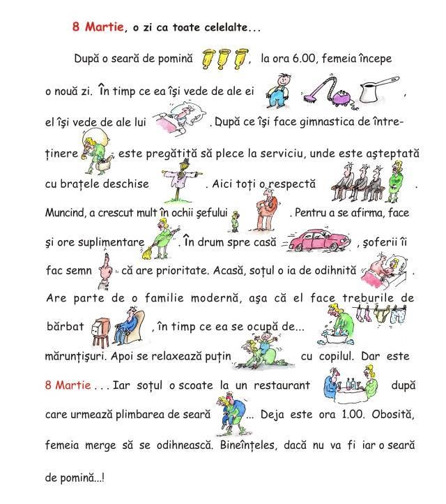 (Fiindcă suntem indiscreți vă putem dezvălui, dar să nu-i suflați lui Costel!, că acest supliment conține programul zilnic al unei românce, văzut în oglindă cu al unui român, că vi se oferă un test vizual prin care vă puteți cunoaște mai bine jumătatea și multe, multe alte secrete!)