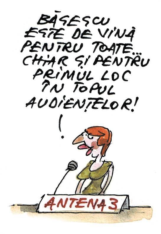 07:00 Bună dimineaţa, dragă jurnalule! Stai, nu te speria. Sunt eu, Antena 3, o entitate ca şi tine. Iată-mă: am un cap mare, puhav şi fălcos. Securiştii mi l-au poreclit Felix. În fruntea mea înaltă şi asudată stă Gâdea, iar în gât am o coardă cam vocală pe nume Grecu. Când am chef – şi am des – mă aplec şi-mi pup dosul cu cele două buze umede şi moi – Badea şi Ciutacu. Şi pentru că vorbeam de dos…