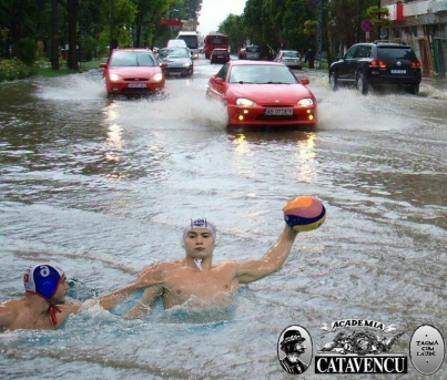 Jucătorii de polo ai României au dubii dacă meciul pe bulevard va atrage mai mulți iubitori ai sportului sau magazinele de firmă. „Ne deranjează faptul că ne claxonează taximetriștii din fața magazinului Unirea, că cică le-am luat locul. Plus că ăștia care mănâncă șaorma pe trotuar dau cu maioneză în apă și ne intră usturoiul în ochi. Iar o să pierdem calificarea, și pe cuvântul nostru dacă noi suntem de vină”, a declarat un jucătorul al naționalei.