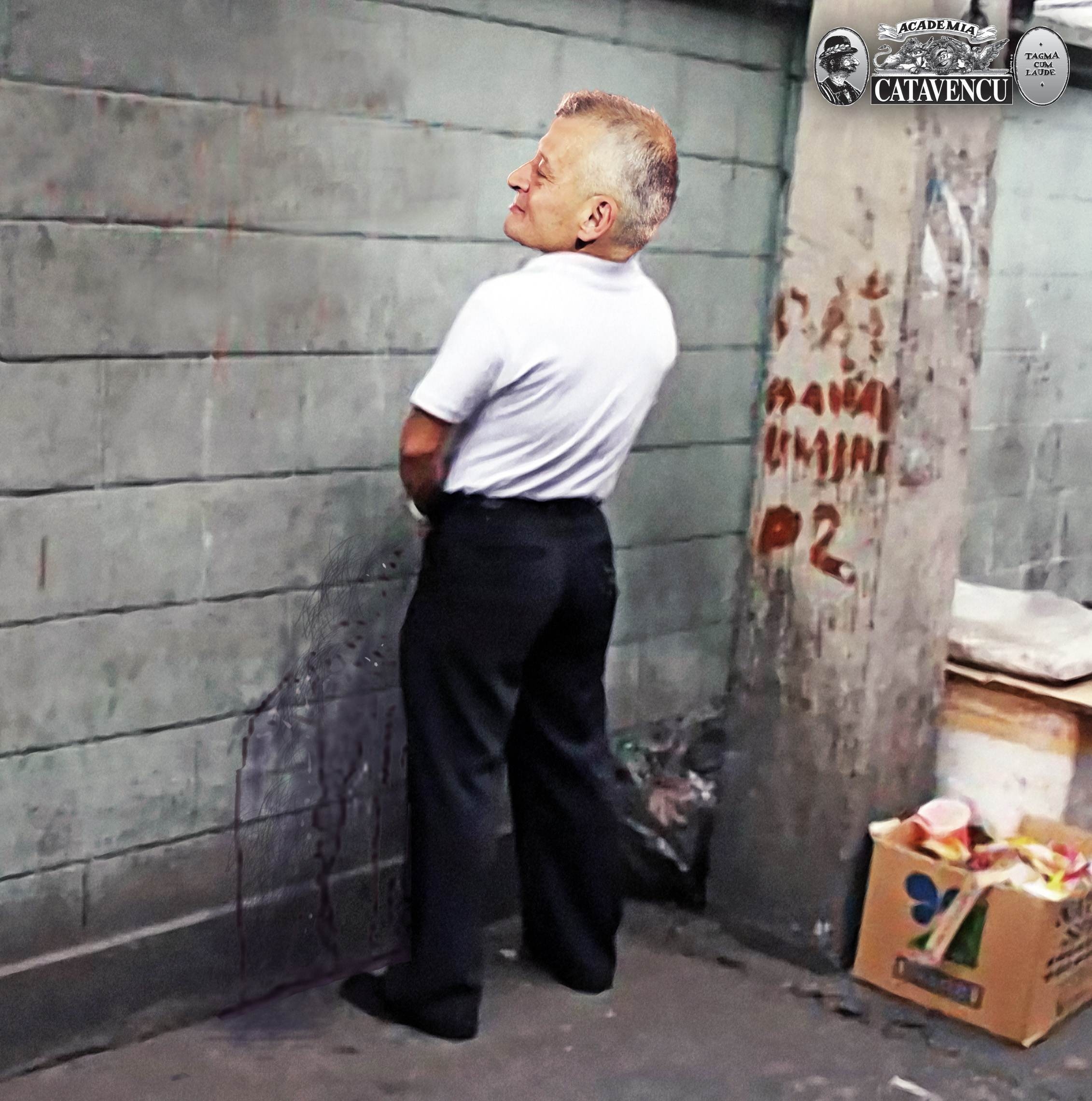Până de curând, spectatorul mirat putea doar să creadă că-i un semn de nostalgie a peșterii. Cu atât mai mult cu cât popularul obicei se manifestă peste tot prin țară, nu doar în București. Habar n-avea că, de fapt, e o atitudine de frondă față de UE, comandată de sus. Îl și vezi pe Oprescu seara, la sfârșitul programului, cum închide veioza de pe birou și iese în fața Primăriei, unde-l așteaptă încolonate trupele de urinători de elită. Le arată o hartă, apoi fiecare om primește câte o găleată de bere și-o zonă de marcat. Cine reușește să și scrie artistic sloganul „Ne *crăpătură-n zid* pe UE” primește un bonus: cei 20.000 de euro promiși fiecărui român de Dan Diaconescu. Atât că ei vin sub forma unor felicitări pentru înscrierea în Partidul Poporului.