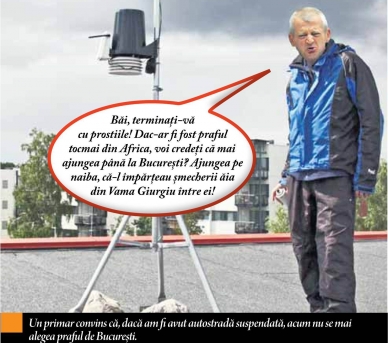 Săptămâna trecută, şoferii treziţi cu noaptea-n cap au avut parte de o surpriză: peste maşinile lor se aşternuse un praf portocaliu de toată frumuseţea. Imediat, meteorologii au lămurit situaţia: cică praful galben – necazul şoferilor şi bucuria spălătoriilor auto – ar fi venit taman din Sahara! Vi se pare imposibil? Ha! De când cu globalizarea asta, nimic nu mai e imposibil. La urma urmei, au ajuns toţi cioripanezii de prin colonii să pape alocaţii prin Soho, de ce să nu vină vânturile sahariene până pe Splaiul Dâmboviţei? Da’ vezi că explicaţia lor n-a fost pe placul primarelui general. Patriot, Oprescu a ieşit la rampă, afirmând că praful de pe străzile Bucureştiului nu vine din Africa, „aşa cum au spus unii înfierbântaţi”, ci din Bărăganul nostru, frate! Adică numai negrii lor să aibă praf, mă, ai noştri, nu?