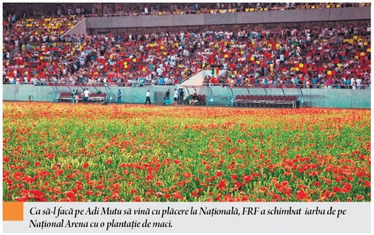 Știm cu toții că România este țara în care de luni până duminică iarba nu crește, deoarece clima de la noi este propice culturilor de palmieri, sequoia și arbori-de-cauciuc, așa că nici iarba de la stadion nu putea să se abată de la această regulă. La noi, ea crește în 10 ani cât alta într-o lună, pe principiul lui Făt-Frumos răsturnat.