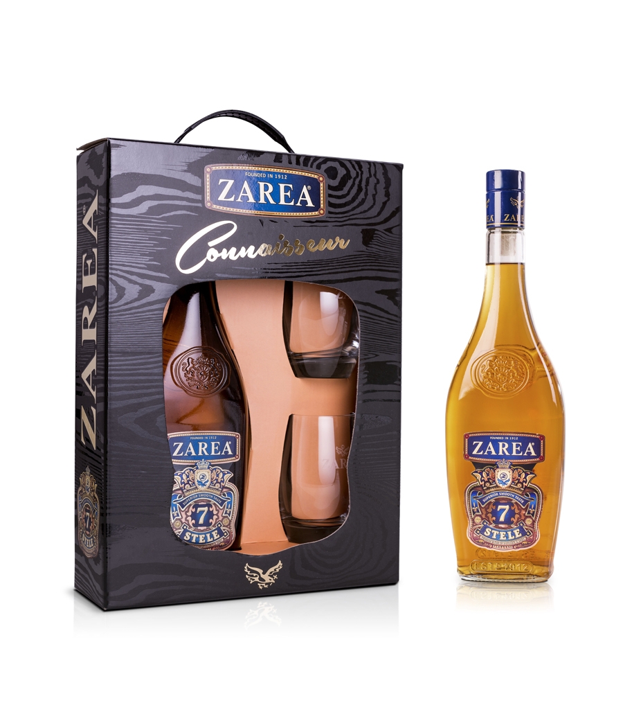 ZAREA 7 Stele se găseşte într-o sticlă cu prezentare premium, în litraje de 0,5L, 0,7L sau într-o cutie elegantă, gata pentru a fi oferită cadou, ZAREA Connaisseur cu 2 pahare elegante.