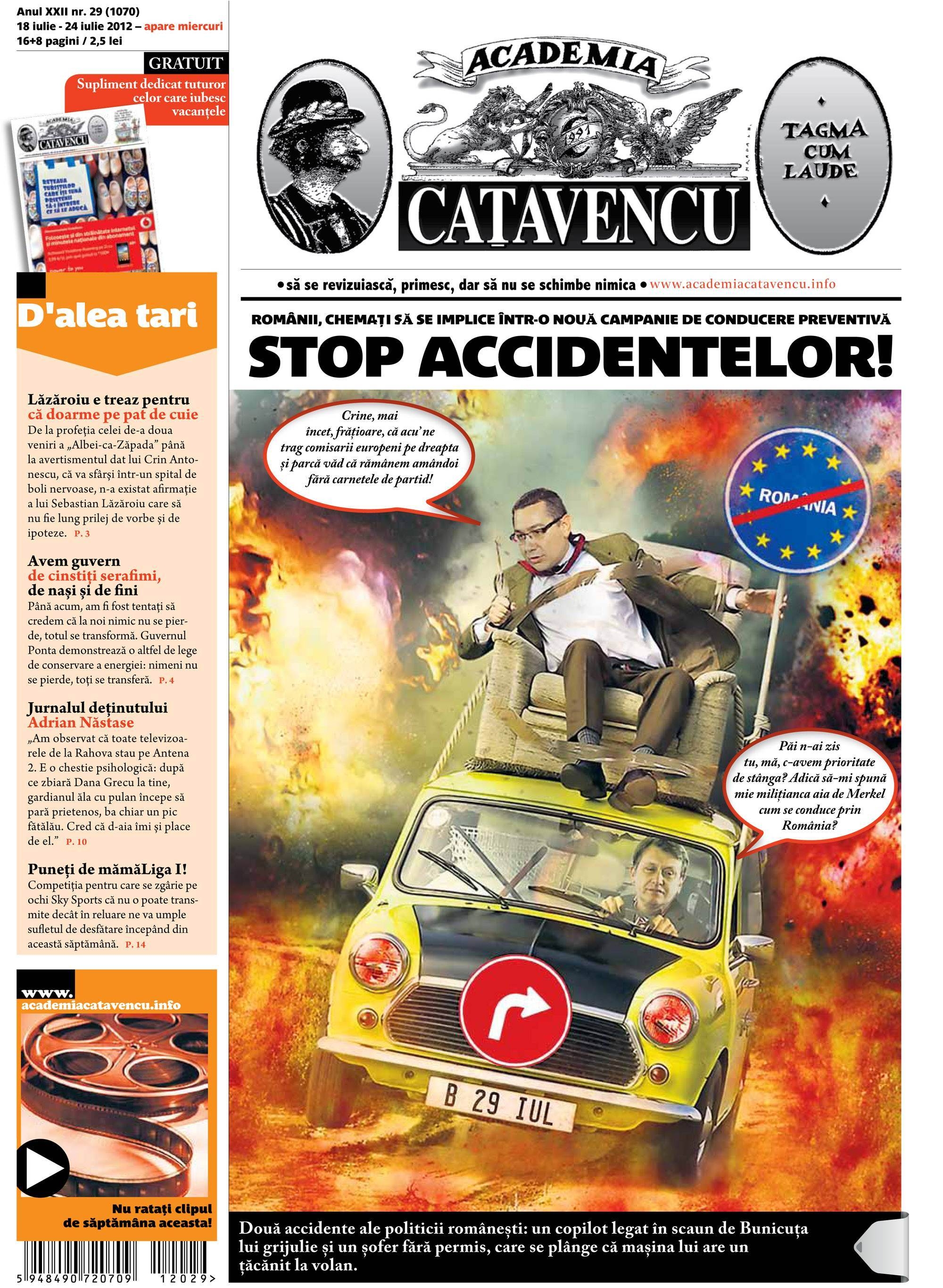 Două accidente ale politicii româneşti: un copilot legat în scaun de Bunicuţa lui grijulie şi un şofer fără permis, care se plânge că maşina lui are un ţăcănit la volan.