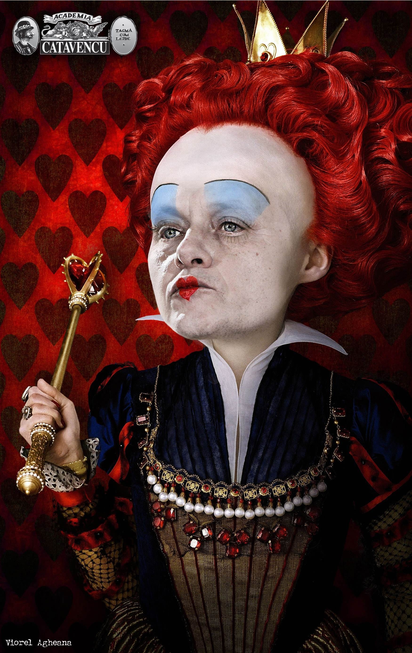 Crin Antonescu primeşte titlul de „Regina Roşie”. Pentru că s-a aliat cu PSD-ul, ducând astfel la bun sfârşit „Revoluţia bunului-simţ”. Crin Antonescu nu-i departe de celebrul personaj al lui Lewis Carroll, preşedintele PNL remarcându-se, în ultima vreme, prin atacuri la persoană, limbaj vulgar, puturoşenie, iluzii de grandoare şi lipsă de bun-simţ. Diferenţa esenţială e că personajul lui Carroll e fictiv…