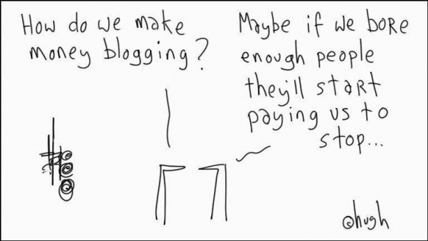 Pe lângă adunat mâncare moca, acolo racolaţi clienţi. Cărora le spuneţi despre cât de minunaţi sunteţi şi cum puteţi să le oferiţi mai multă acoperire în online decât a avut nunta regală. În realitate, sunteţi nişte premieri mici care faceţi copy/paste/google-translate de informaţii de pe site-uri din afară, în cazul în care blogul vostru pretinde să abordeze un subiect anume (ultima modă este să ai blog despre cum eşti tu specialist de social media), opinaţi în minimum 300 de cuvinte (că altfel nu vă indexează bine Google) despre orice de la Alexandra Stan până la ultimele politici ale Comisiei Europene şi daţi linkuri în FB, în Twitter, în Google+, faceţi poze cu filtre în Instagram şi ne spamaţi mailul cu orice jeg de articol. Totul pentru cinci pişcoturi.