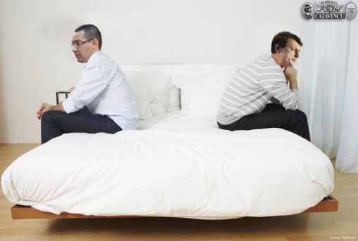 În afara denunţului obişnuit legat de eternul pericol naţional Băsescu, devenit deja un fel de parolă între conjuraţi, cel făcut praf e păgubosul pact pomenit mai sus şi, prin ricoşeu, camaradul Ponta, semnatarul documentului doar de dragul de a se legitima cu el în faţa interlocutorilor “europeni, americani, sud-americani şi asiatici”; în loc de a ne legitima internaţional cu votul obţinut în alegeri şi de a-i da ilegitimului Traian nu pact de coabitare, ci suspendare pe spinare. Respectiva înţelegere e definită ca un “circ zilnic”, cu doi clovni de care nu mai râde nimeni. Toată chestiunea este extinsă asupra Justiţiei, că doară acolo e buba ce a coalizat cruciada împotriva ereticului Băsescu. Doamna legată la ochi ar fi şi ea împărţită în mod egal de cei doi coabitanţi, care fac cu rândul la uşa ei, iar magistraţii devin prizonierii unei lupte politice. Condiţie de neacceptat pentru Profesorii coaliţiei, rămaşi în afara jocului şi sacrificaţi mişeleşte pentru un mizilic de 60.000.000 de euro, înţelegem noi, citind printre rânduri.